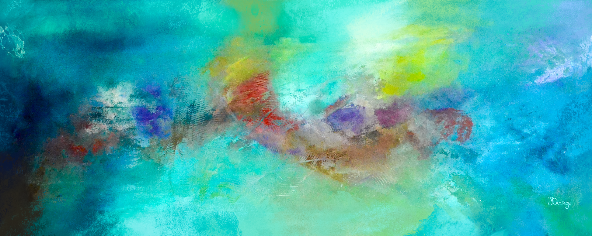 Abstract kleurrijk schilderij Outside the lines als reproductie op canvas, plexiglas of HD Metal.
